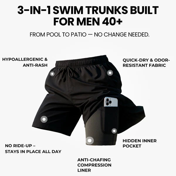 Whether you're hitting the waves or the weights, our men’s 3-in-1 swim trunks with phone pocket deliver all-day comfort and modern style. Grab yours now during our summer sale!