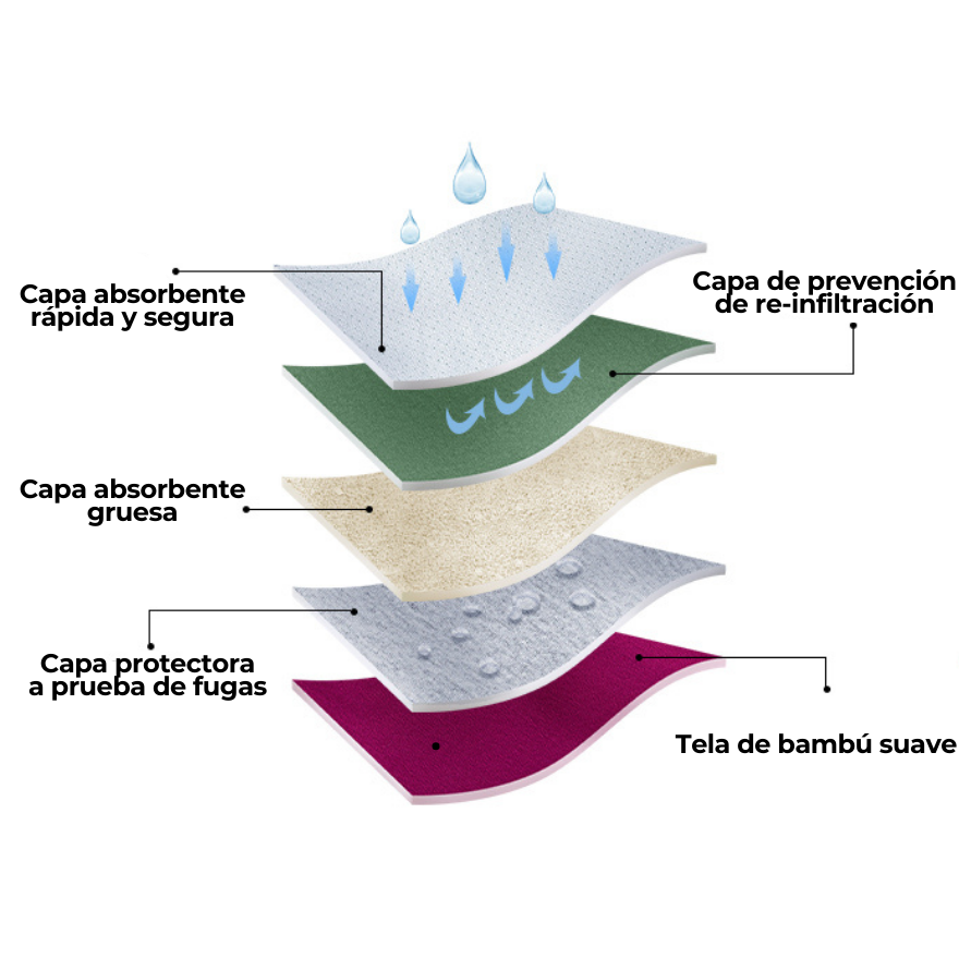BRAGA DE BAMBU 100 % IMPERMEABLE DE CALIDAD SUPERIOR - PARA CONFIANZA DURANTE TODO EL DÍA