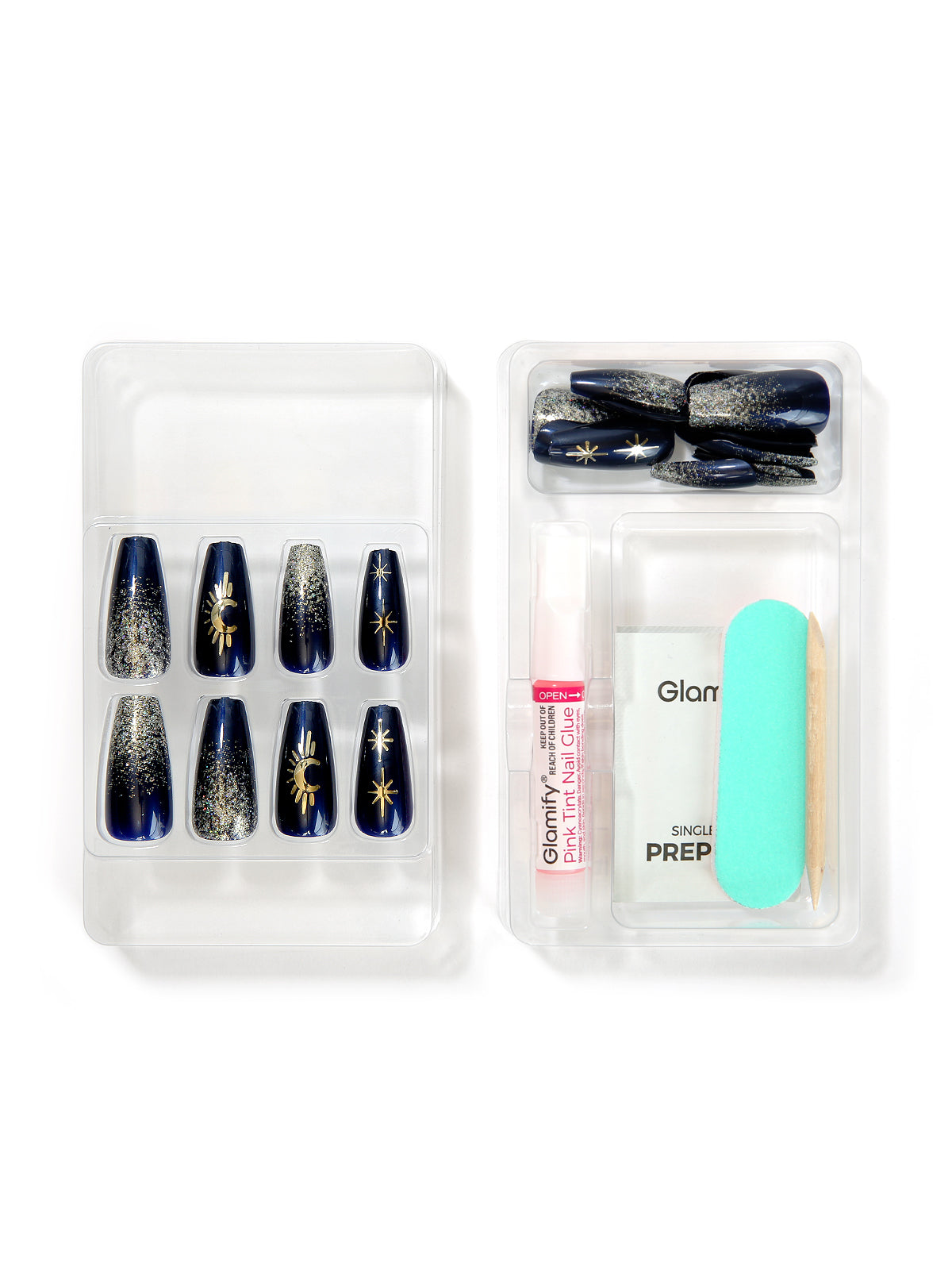 - PREP: Start with clean, dry nails, select the best fit nail size for each finger, then set aside. Use the included cuticle stick to gently push back cuticles, then lightly buff natural nail surface with the fine grit nail file/buffer. Wipe and clean nail surface with the included prep pad.