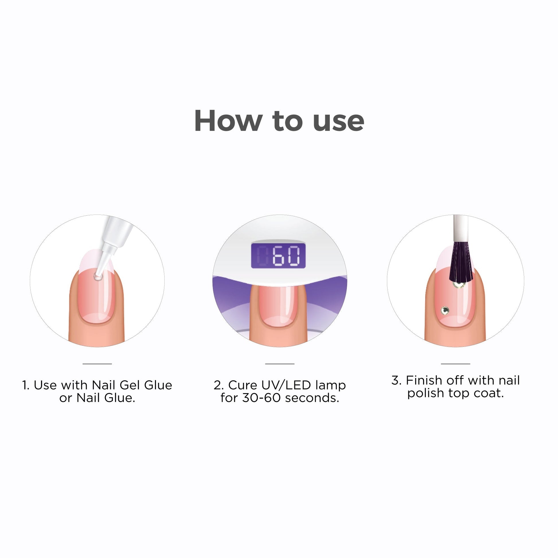 Easy to apply with nail gel glue or nail glue, finish off with nail polish topcoat.